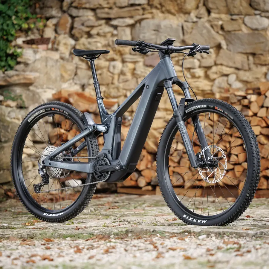 A Bicicleta Elétrica SCOTT Patron 920 tem suspensões RockShox Psylo, X-Fusion Nude e Transmissão Shimano Deore de 12 velocidades e Travões de disco Shimano.